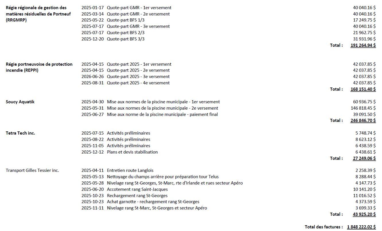 *Chacun de ces octrois de contrat ont été faits dans le respect du Règlement sur la gestion contractuelle de la Municipalité de Sainte-Christine-d'Auvergne.